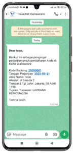 Jika sudah dilengkapi klik tombol Cek Ketersediaan HD, maka akan tampil Informasi Tanggal Booking dan Jam, Klik Tombol Booking, maka akan mendapatkan Code QR Code dan Notifikasi WhastApp