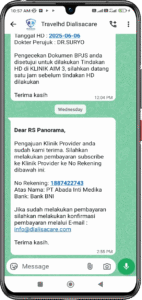 - Selanjutnya Provider silahkan lakukan pembayaran berdasarkan Type Subscribe yang dipilih, dan mengkonfirmasi ke Email : info@dialisacare.com untuk melakukan Konfirmasi pembayaran